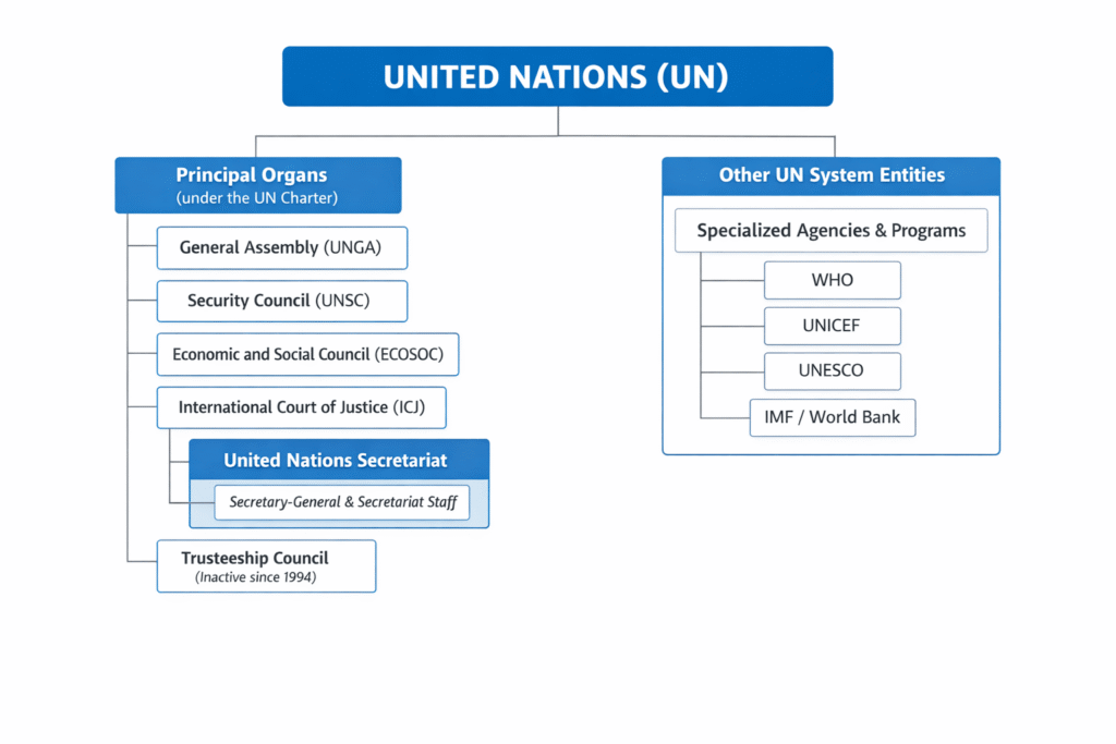 इस प्रकार संयुक्त राष्ट्र (UN) क्या है यह केवल एक प्रशासनिक संस्था नहीं, बल्कि युद्ध से थकी मानवता की सामूहिक और आशावादी पहल है।